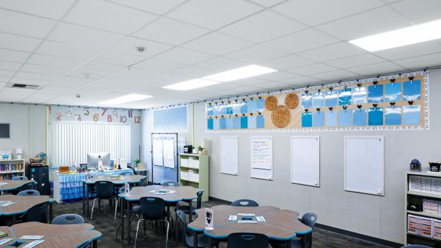 The classrooms were retrofitted with TEMPLOK Ceilings, which contain Phase Change Material (PCM), to add thermal mass. By utilizing PCM, the ceiling acts as a thermal buffer that absorbs heat during the day and naturally resets overnight.